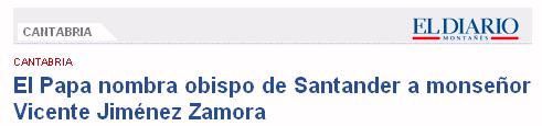 La Nunciatura Apostólica en España comunica a la Conferencia Episcopal Española (CEE) que a las 12,00 horas de hoy, viernes 27 de julio, la Santa Sede ha hecho público que el Papa Benedicto XVI ha nombrado Obispo de Santander a Mons. Vicente Jiménez Zamora, en la actualidad Obispo de Osma -Soria.