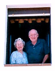 Foto: Helen y Beville Outlaw en el año 2003 en una ventana de su casa en Garabandal.
