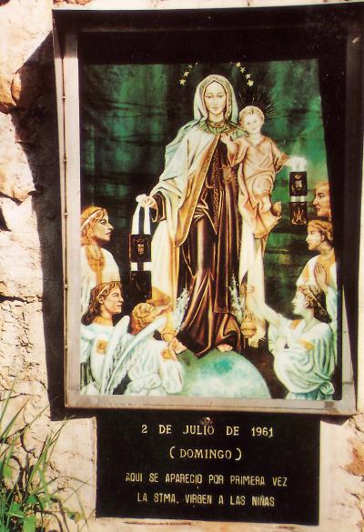 La Santísima Virgen se apareció a las niñas el 2 de julio de 1961 acompañada de dos ángeles que parecían mellizos, eran San Miguel y San Gabriel.