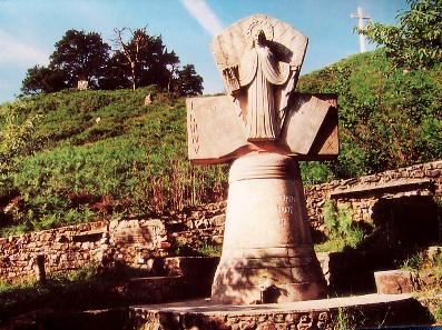 Aquí, la Virgen de Garabandal, en lo alto del monumento, una campana a modo de llamada para el mundo, nos muestra el camino a seguir: "antes tenéis que ser muy buenos", es decir, cumplir los Mandamientos, señalados del I al X, y la urgencia con que vino: "Se fue presurosa a la montaña" y todo por Voluntad de Dios: "He aquí la esclava del Señor". Ella quiere llevarnos a todos a Jesús.