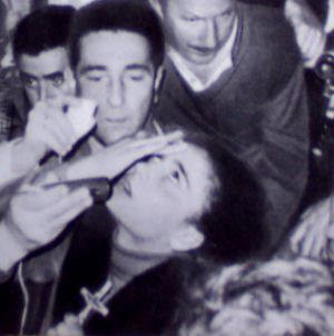 Foto: Momento en que Conchita empieza a santiguarse con gran devoción.