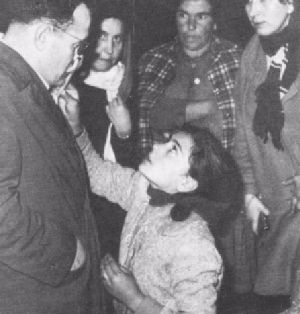 Cayó en éxtasis y después de dar todo a besar a la Virgen, la niña devolvió cada objeto a su dueño sin una sola equivocación. Esto tuvo lugar delante de mí. La niña desconocía completamante quién era el dueño de cada objeto.La noche de los gritos yo estaba allí. Los gritos y llantos de las niñas realmente eran terroríficos. Recuerdo que la gente pedía al monje que estaba allí, que rezase.