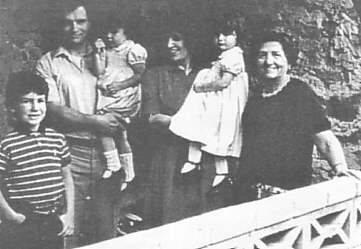 Paquita Mañueco de Garay, a la derecha, con Mari Loli, su esposo Frank y sus hijos, en Garabandal en los años de 1980.