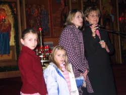 Christina y Roksolana, con su madre Lesia y Helen Rozeluk, en la Iglesia de los Santos Pedro y Pablo en Toronto.