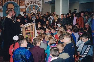 Nos presentó el párroco, P. Zenovy Kasko, y celebró una Moleben, una liturgia dedicada a Madre María, seguida del rezo del Rosario, mientras los sacerdotes de otras parroquias oían las confesiones.