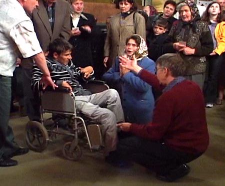 La madre del muchacho de veinte años, Nazar, tras saber lo que sucedió con los misioneros de Canadá, trajo a su hijo en silla de ruedas. Sus brazos y piernas estaban torcidos y paralizados desde su nacimiento y su cara desfigurada. Durante los rezos, sus manos empezaron a estirarse. Se le puso una pequeña estampa de Jesús en la palma de la mano, los dedos de su mano se abrieron.