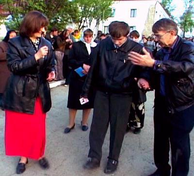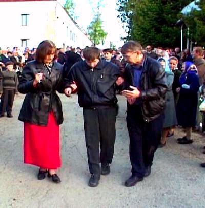En Hoshiv, este joven era incapaz de andar. Después de besar la medalla de Garabandal y de las Oraciones, él ya pudo caminar.