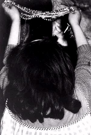 Loli desenreda con toda facilidad los rosarios y cadenas,